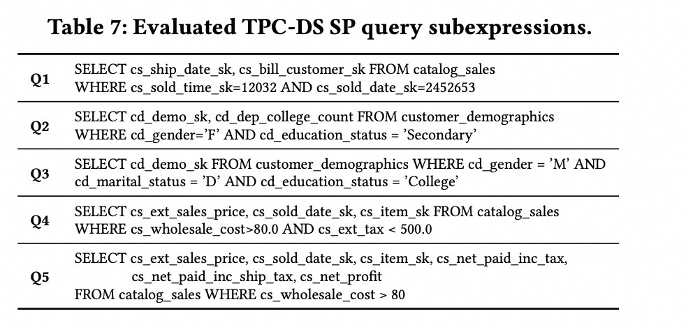 基于 TPC-DS 数据集和 Query,执行若干联合 Project 和 Filter 的查询语句,其 benchmark 结果如下所示: