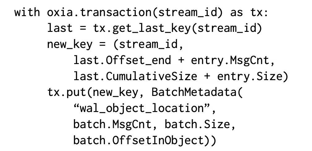 - Key:(StreamID, OffsetEnd, CumulativeSize)